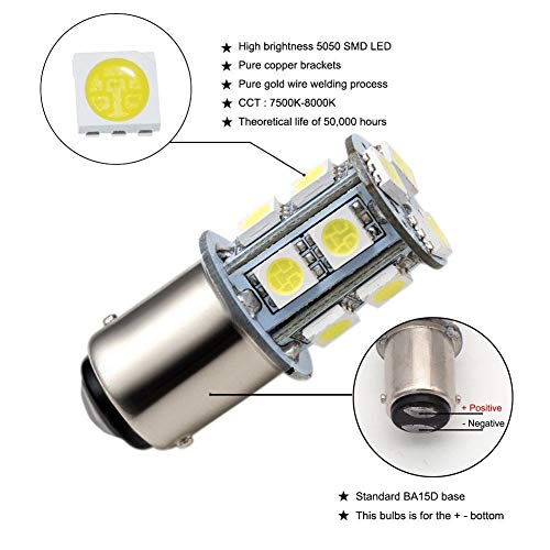 AIYOWEI BA15D 1142 1076 1176 - Lampadina LED per auto ad alta luminosità, 13-5050SMD AC/DC12V-24V, bianco puro, confezione da 10