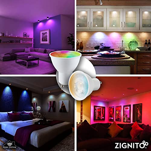 Ajax Online Smart Zigbee Zignito GU10,Lampadine a LED per faretti, compatibili con Philips Hue*, Alexa e Google Home,RGBCW,HUB richiesto (confezione da 4)