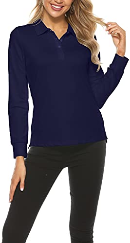AjezMax Polo Donna Manica Lunga Poloshirt Golf Camicia Lavoro Sportiva Autunno Inverno Top Blu Gioiello S
