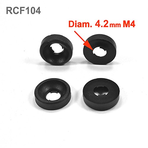 Ajile Rondelle Cilindriche di Finitura in Plastica Poliammide NERO per Vite a Testa Svasata con Filettatura Metrica 4 mm M4 - Confezzione da 50 Pezzi - RCF104x50-FBA
