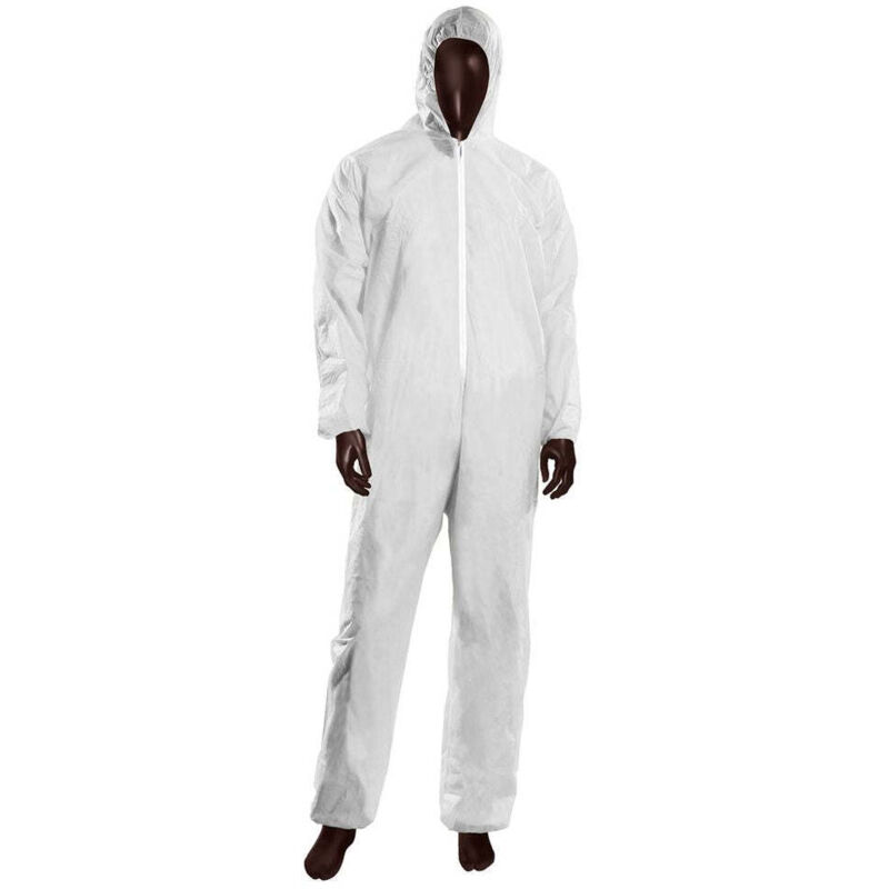 Per salvaguardia del corpo da rischi di lieve entità. Completa di cappuccio, chiusura con cerniera. Elastico a polsi, caviglie, cappuccio. Marcatura CE, standard EN ISO 13688:2013. Categoria di protezione I (rischi minimi), assicura igiene e protezione. Peso 40 gr/mq. Prodotto non sterile, non impermeabile. Imbustata singolarmente.