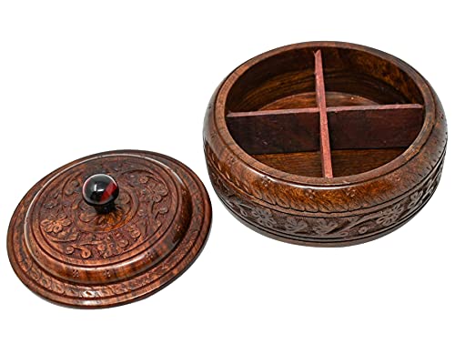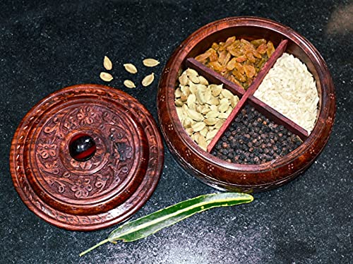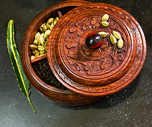 Scatola per spezie in legno indiano di dimensioni ideali: non troppo grande, non troppo piccola, solo la scatola di legno di dimensioni giuste che aiuterà a organizzare tutte le tue spezie preferite in un unico posto;