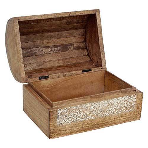 Ajuny - Portagioie in legno di mango indiano, intagliato a mano, con motivi floreali