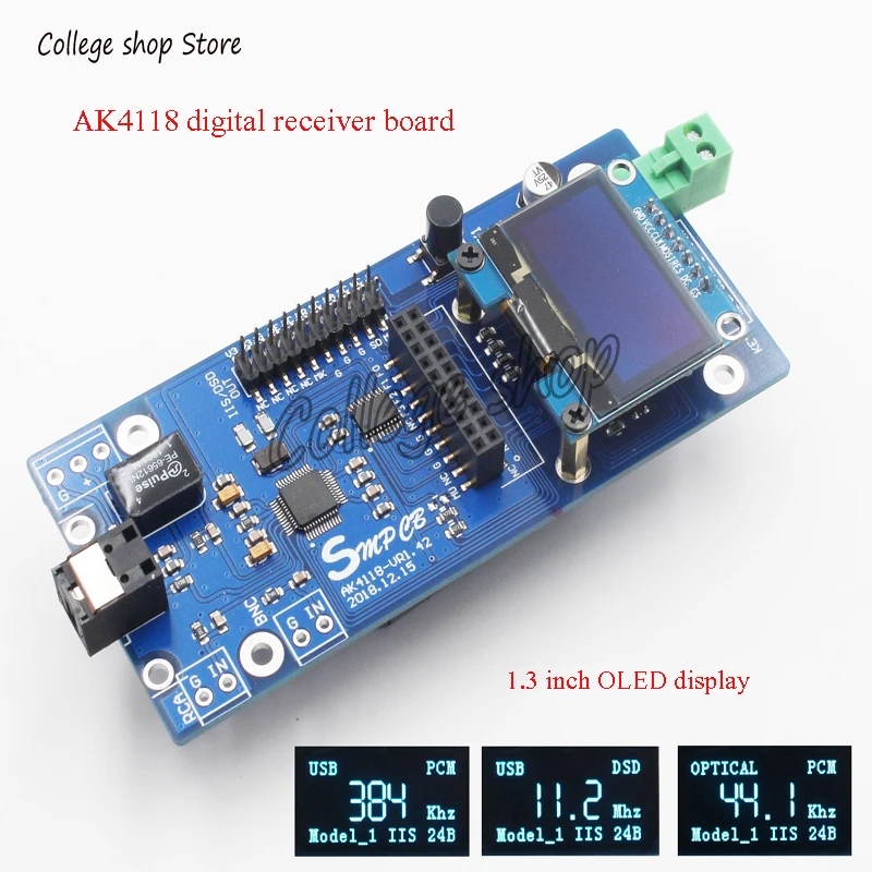 AK4118 Digital Receiver Board SPDIF to IIS Supports XMOS / Amanero USB Card OLED Display