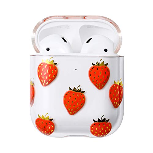 AKABEILA Airpods Cover compatibile con AirPods 2 e 1 (2019) Custodie carine motivi trasparenti in policarbonato rigido antiurto [frontale a LED visibile] antiurto protezione completa, fragola
