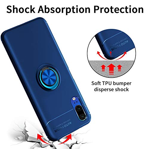 AKABEILA Cover Huawei P20 Pro, Vetro Temperato Huawei P20 Pro, Compatibile con Huawei P20 Pro Custodia Silicone Pellicola [Metallo Squillare Grip Supporto] Antiurto Cover, Blu