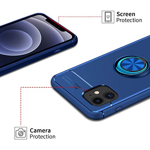 AKABEILA Cover iPhone 12 Mini, Vetro Temperato iPhone 12 Mini, Compatibile con Apple iPhone 12 Mini Custodia Silicone Pellicola [Metallo Squillare Grip Supporto] Antiurto Cover, Blu