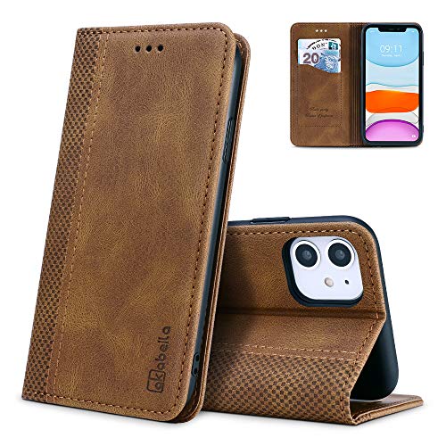 AKABEILA Cover iPhone 12 Pelle, Custodia iPhone 12 Pro Silicone, Compatibile per Apple iPhone 12/12 Pro Cover Custodia Flip Portafoglio Magnetica Stand Covers Frosted Porta Telefono, Marrone
