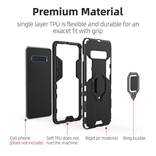 Compatibilità: Solo custodia per Galaxy S10 cover, protezione a doppio strato antiurto a doppio strato con protezione anti-shock con cavalletto per Samsung Galaxy S10.È robusto, leggero e luminoso. Impugnatura per un dito in mano, che impedisce al telefono di scivolare e perdere.