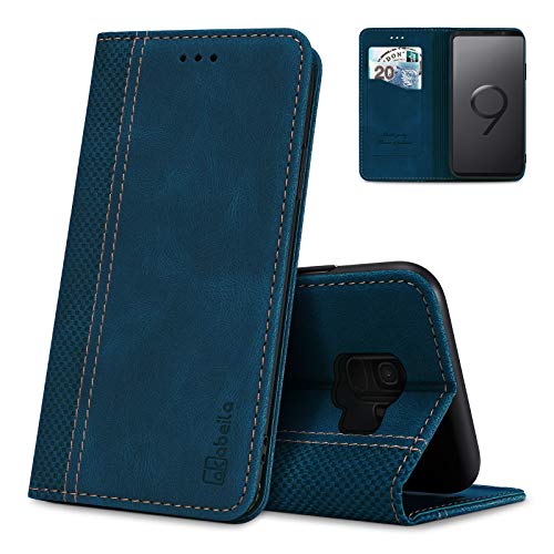 AKABEILA Cover Samsung S9 Pelle, Custodia Samsung S9 Silicone, Compatibile per Samsung Galaxy S9 Cover Custodia Flip Portafoglio Magnetica Stand Covers Frosted Porta Telefono, Blu
