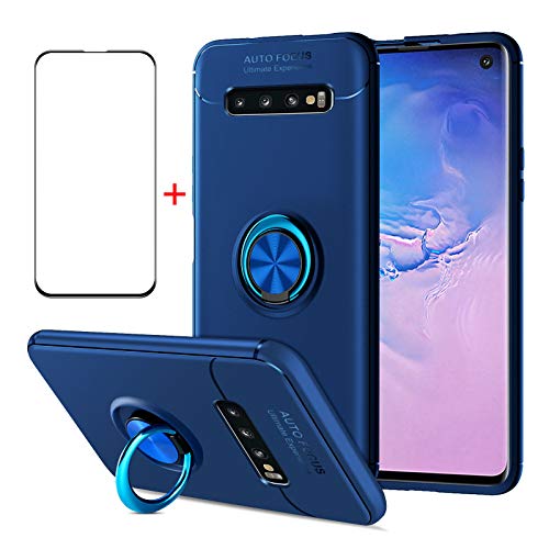 AKABEILA Cover Samsung S10 Plus, Vetro Temperato Samsung S10 Plus, Compatibile con Samsung Galaxy S10 Plus Custodia Silicone Pellicola [Metallo Squillare Grip Supporto] Antiurto Cover, Blu