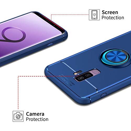 AKABEILA Cover Samsung S9 Plus, Vetro Temperato Samsung S9 Plus, Compatibile con Samsung Galaxy S9 Plus Custodia Silicone Pellicola [Metallo Squillare Grip Supporto] Antiurto Cover, Blu