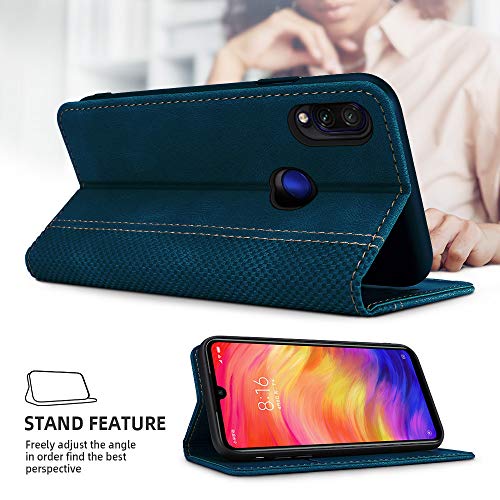 AKABEILA Cover Xiaomi Redmi Note 7 Pelle, Custodia Redmi Note 7 Silicone, Compatibile per Xiaomi Redmi Note 7 Cover Custodia Portafoglio Magnetica Stand Covers Frosted Porta Telefono, Blu