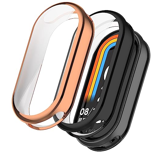 Akancy[2 pezzi Compatibile con mi band 8, Custodia Protettiva Pellicola Antigraffio Protezione Dello Schermo In Custodia Intera In TPU Protezione Completa - black rosegold
