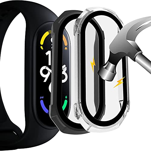 [Design perfetto]: custodia per PC molto resistente + vetro temperato con protezione per lo schermo, copre l'intera parte anteriore e i bordi curvi dell'mi Band 7, protegge da graffi, cadute e urti.