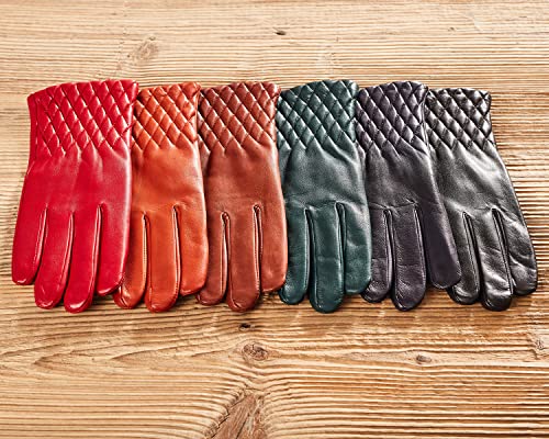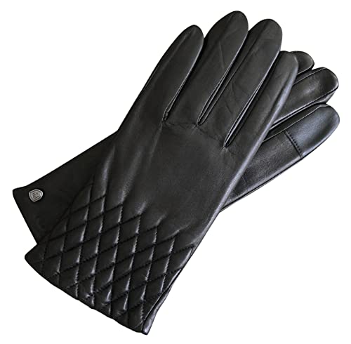 AKAROA ESTD 2019 - Guanti da donna ISA, in pelle di pecora italiana, funzione touch, fodera in maglia 50% cashmere e 50% lana, 4 taglie S-XL Nero S