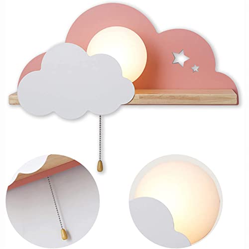 AKBOY LED Rosa Interno Lampada da Parete con Interruttore a Tirante Bianco Modello Nuvola per Camerette Stanzette Bambini E27 Applique Interno Cloud Legno Iluminazioni per Pareti Nuvole Decorativa