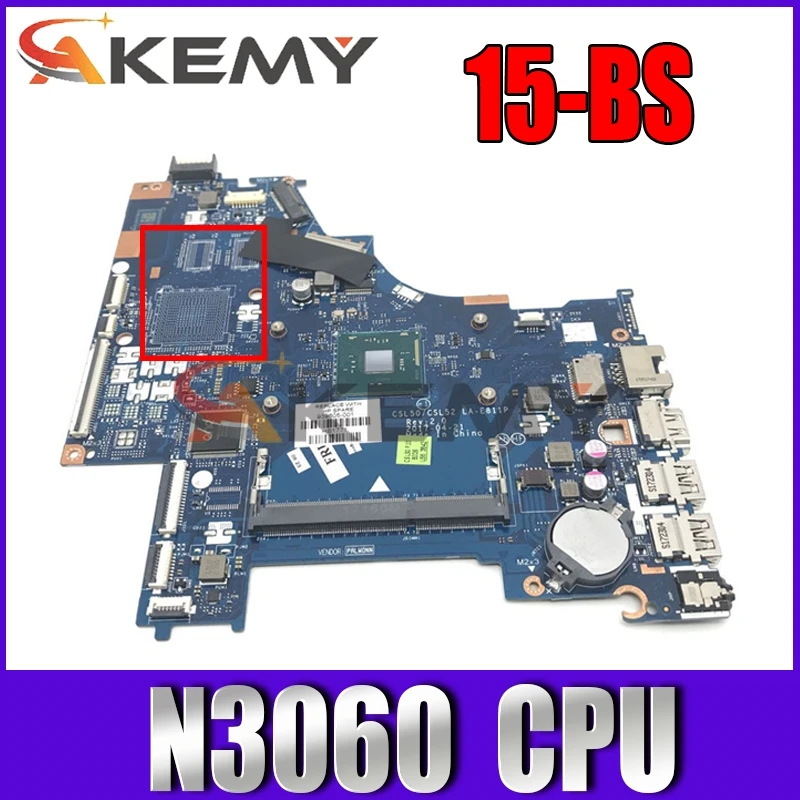 AKemy Laptop motherboard For HP Pavillion 15-BS Core SR2KN Celeron N3060 Mainboard 924753-601 LA-E811P