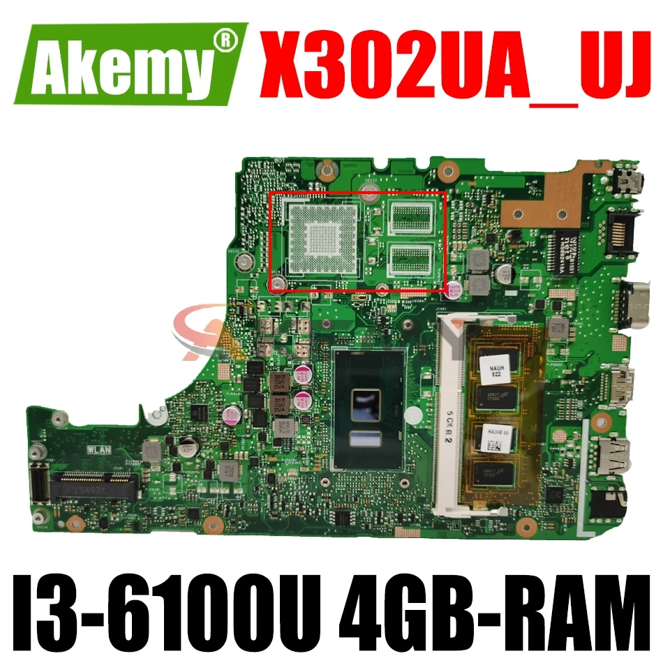 AKEMY X302UA_UJ Laptop Motherboard For ASUS X302UA X302UJ X302UV Original Mainboard Onboard 4GB-RAM I3-6100U GM