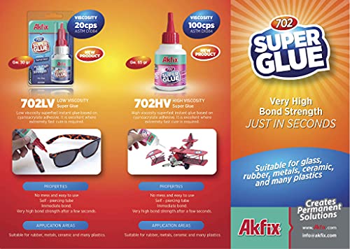 Akfix 702, Super Glue - Colla istantanea, extra forte - Colla rapida professionale multiuso [colla istantanea chiara]
