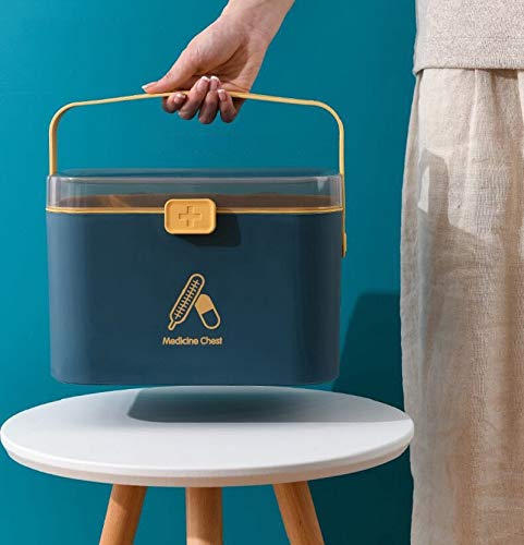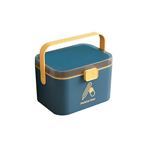 Akin - Cassapanca per medicina con serratura a doppio strato, per pronto soccorso, contenitore per medicine di emergenza, grande spazio, portatile, per casa, scuola, auto, taglia S, colore: Blu