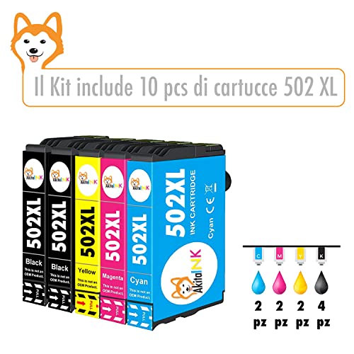 AkitaINK 502XL Cartucce Compatibili per Epson 502 XL Multipack per Expression Home XP-5100 XP-5150 XP-5105 XP-5155 e WF-2860DWF WF-2865DWF WF-2880DWF WF-2885DWF (4 Nero 2 Ciano 2 Magenta 2 Giallo)
