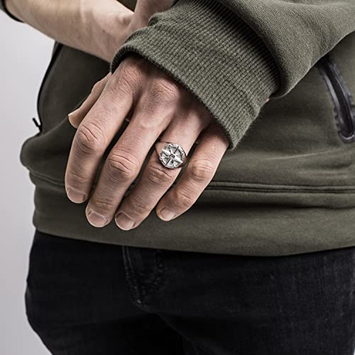 Akitsune Anello Guidance | Bussola Mappa Nord Nautico Anello da uomo in acciaio inox, nero opaco, acciaio inox