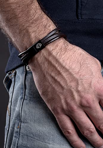 Pelle e acquisto senza rischi: bracciale in pelle Akitsune da uomo unico di alta qualità con chiusura magnetica. In caso di non piacere, hai la possibilità di restituire gratuitamente per 30 giorni.