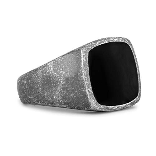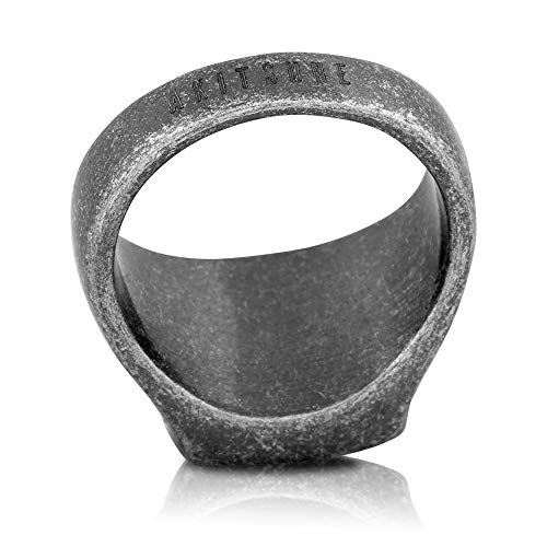 Akitsune Opus Anello | Sigillo in Acciaio Inox Grande Design Minimalista degli Uomini delle Donne Anello - Argento Antico - 7 US