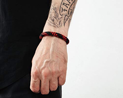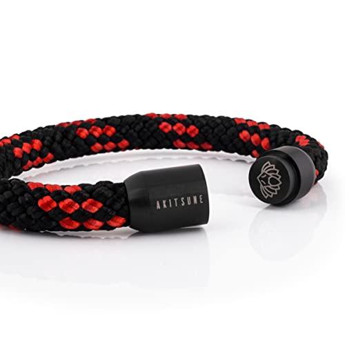 ❥% fatto a mano: alta qualità Akitsune braccialetto corda nautica con chiusura magnetica in acciaio inossidabile - opaco lucido. Il cinturino in nylon nero e rosso ha un diametro di 9 mm ed è stato realizzato a mano.
