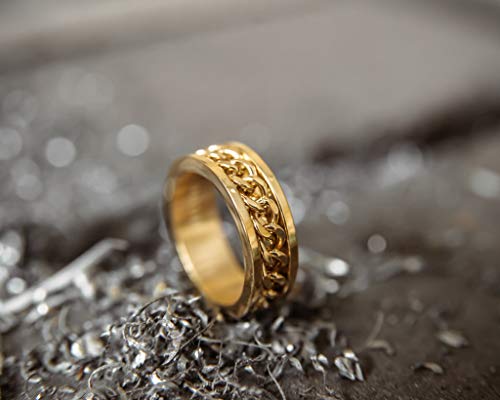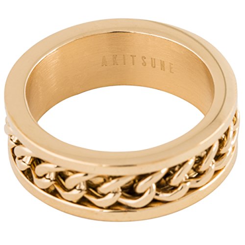 Akitsune Redemptor Anello | Catena di progettazione Anello Donne Uomo Acciaio Biker - Oro - US 10