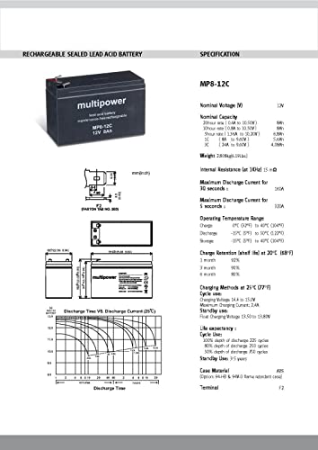 ▶ Tipo: Lead-Acid | ▶ Voltaggio: 12V | ▶ Capacit?: 8Ah/96Wh | ▶ Dimensioni prodotto: 151mm x 65mm x 102mm | ▶ Peso articolo: 2720 g. | ▶ 100% compatibile |