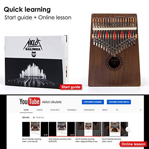 AKLOT Kalimba 17 Tasti Thumb Piano in Legno Massello, Marimba Strumento Africano Professionale Finger Piano con Custodia Protettiva, Lezione Online, libretto di studio per Principiante
