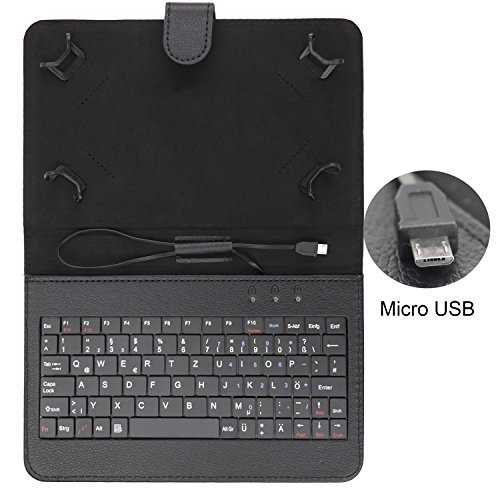 AKNICI Custodia da 7 pollici, con tastiera QWERTZ tedesca per tablet PC, tastiera micro USB, nero