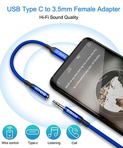 AkoaDa Adattatore per cuffie da USB C a 3,5 mm, adattatore audio USB C a jack per Aux, stereo, cuffie, MacBook, Samsung S21/S20/S20 Plus/Note 10/A80, iPad Pro, Huawei P30 Pro/P20/P20 Pro, ecc. (blu)