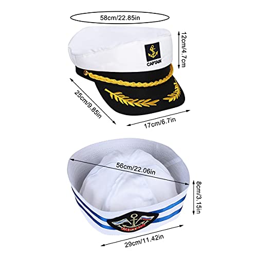 【ACCESSORIO IDEALE PER LE FESTE】- Ogni pacchetto include un cappello da capitano e un cappello da marinaio, stili diversi possono soddisfare le tue diverse esigenze. Adatto per feste in costume che possono farti sembrare fresco e attraente con il nostro cappello. Sono ornamenti necessari per la festa a tema marina.