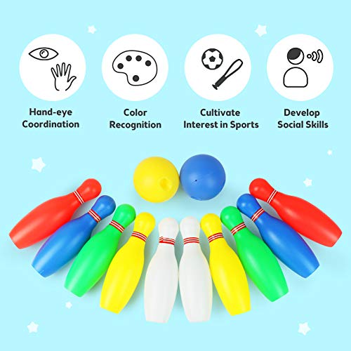 Akokie Birilli Bowling Set Colorato Palla da Bowling Giocattoli Gioco di Sport per 3+ (12 Pezzi )