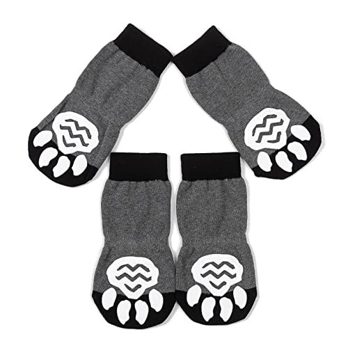 Akopawon 4 pezzi Calzini antiscivolo per cani e gatti Proteggi zampe Calzini controllo trazione per interni, Calze per cuccioli cane e gatto con rinforzo in gomma,Taglia S - 3XL Per cani 1.0-22.5kg