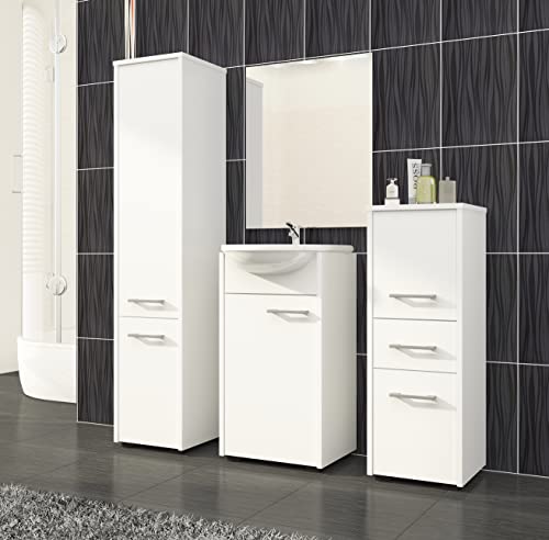 Armadio alto moderno: lo spazioso armadio alto per il bagno | badezimmer kommode | in stile elegante e moderno offre un'opzione ideale per riporre cosmetici, profumi, bagnoschiuma, asciugacapelli, asciugamani e altri utensili da bagno.