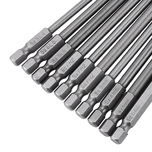 Akozon Antiscivolo Punte per Cacciavite, Punta Long BST per Cacciavite Magnetico, 10pz (Intaglio + Croce + Testa Esagonale) 1/4 pollice Esagonale con Gambo 100mm