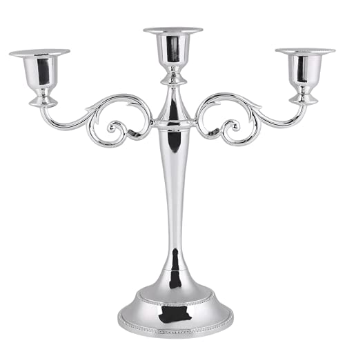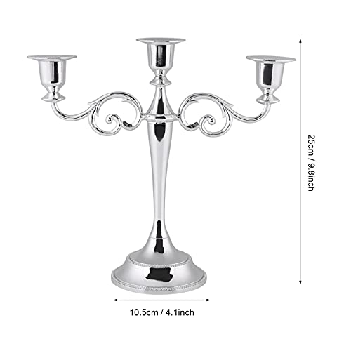 Akozon candelabro Portacandele in Metallo a 3 Bracci per Candelabri stile europeo candelabri matrimonio candeliere decorazioni per la casa(argento)