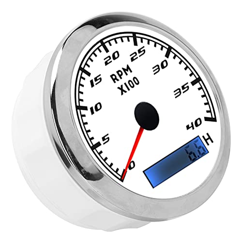 Akozon Contagiri per Auto Contagiri con Puntatore per Barca da 85 Mm / 3,35 Pollici Retroilluminazione Rossa LCD DC 9-30V Acciaio Inossidabile IP67 Universale per Autocarro(bianco)
