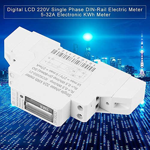 Akozon - Contatore di energia digitale LCD per la casa, 220 V, monofase DIN con guida DIN 5-32 A, contatore di energia elettronico, contatore di potenza