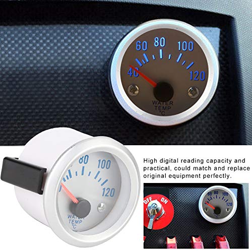 Akozon Indicatore di Temperatura Dell'acqua per Auto Universale 52mm Termometro Digitale Dell'acqua del Motore LED Blu Intervallo 40-120 ℃ Bianca