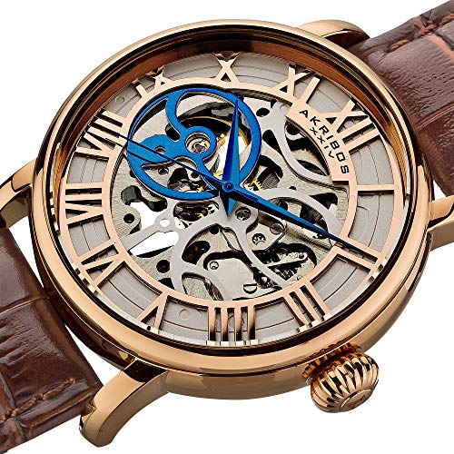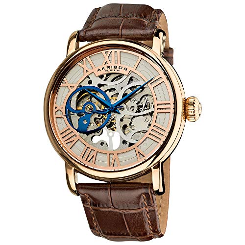 Akribos XXIV AK540RG Mechanical Skeleton Orologio da Polso Analogico da Uomo, Cinturino in Pelle, Marrone
