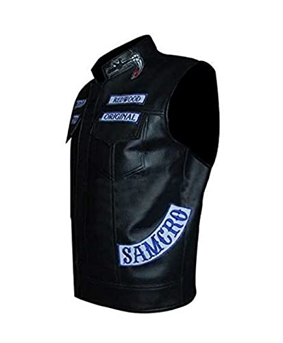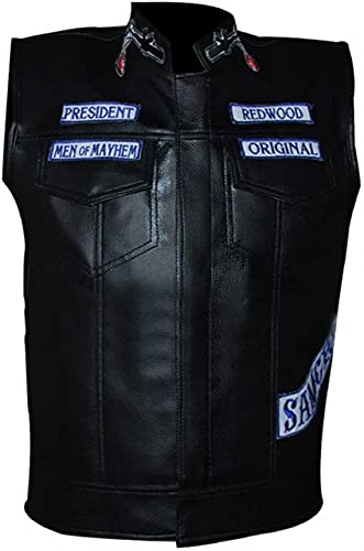 Questo gilet nero in ecopelle è antivento e ha cuciture resistenti per una maggiore longevità. Gilet da motociclista con toppa Sons of Anarchy sul retro