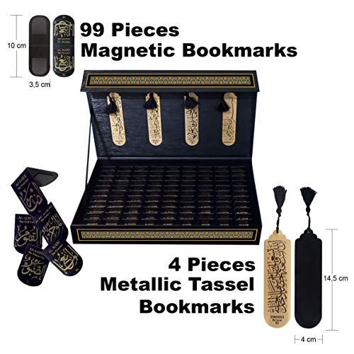 Al-Asma Ul-Husna - Set di 103 segnalibri in metallo e magnetici, da Pictor Gift, 99 bei nomi di Allah, versi selezionati del Santo Corano, musulmano, Ramadan, islamico, Al Adha, Eid Mubarak Gifts