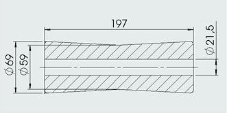 Materiale gomma Superficie opaca Colore nero Diametro esterno ø69 mm Diametro interno ø59 mm Lunghezza 197 mm foro ø21,5 mm (vedi disegno tecnico)
