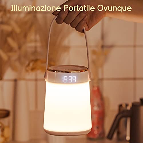 ALACRIS Lampada da Comodino, Luce notturna a LED con Sveglia, Sensore di Temperatura, Luce Dimmerabile per Aiuto al Sonno, Adatto per Camerette di Neonati e Bambini, Buono Regalo per la Mamma