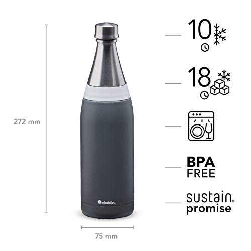 Aladdin Fresco Twist & Go Borraccia Termica Acciaio 0.6L Slate Gray - Mantiene il Freddo per 10 Ore - Bottiglia Acqua con Isolamento a Vuoto - Senza BPA - Lavabile in Lavastoviglie